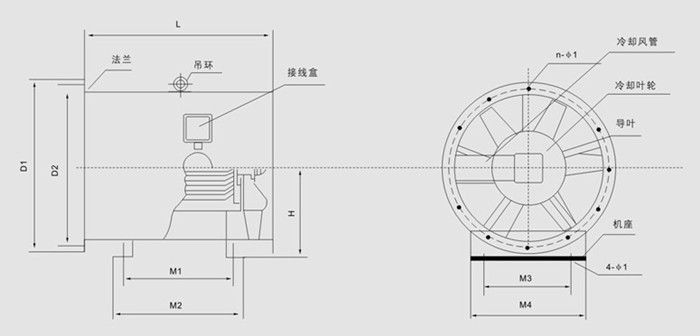 2、HTF—Ⅰ、HTF—Ⅱ表示常壓型消防高溫排煙風機,葉型采用軸流式:HTF—Ⅰ(單速) 和HTF—Ⅱ(雙速)兩種;HTF—Ⅲ、HTF—Ⅳ表示中壓消防高溫排煙專;